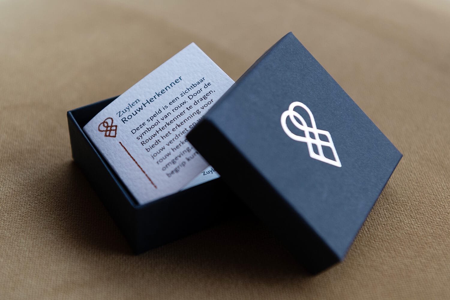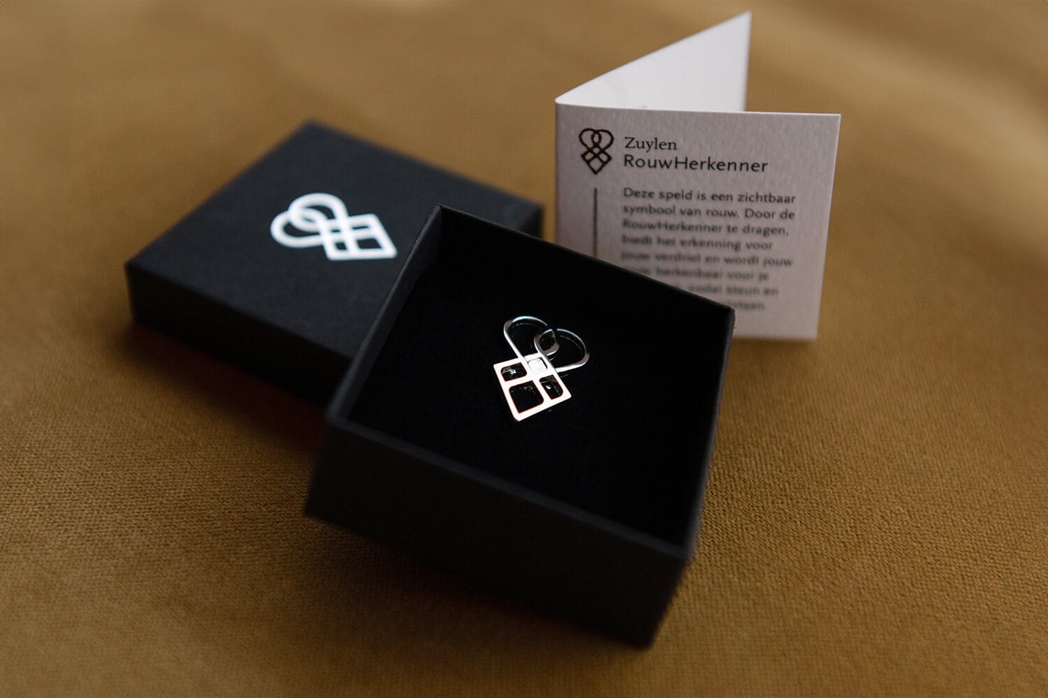 Rouw pin zilver in geschenkdoosje met Zuylen kaartje.